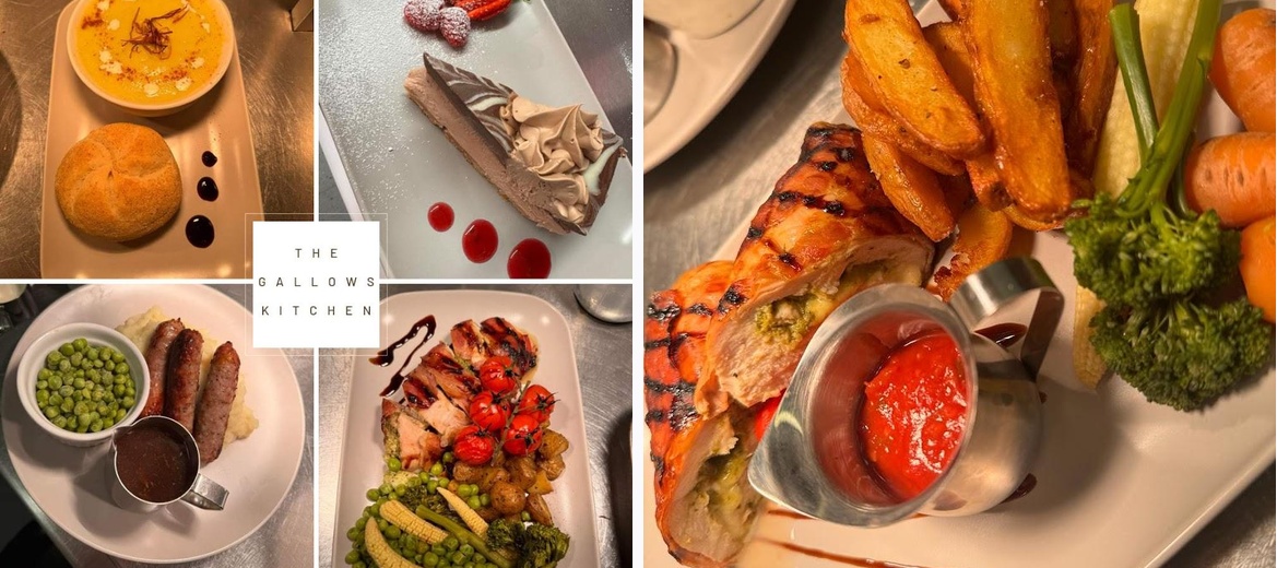 The Gallows offers a versatile menu that includes delicious starters like soup and garlic bread, hearty mains like fish and chips, and creative extras like onion rings and fries. A must-try is their Wicked Burger.